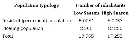 According to the interviews conducted, during high season the floating population reached almost 12 250 people, assuming 100 % occupancy at all lodging establishments. If the resident population is also added, the number of people present in Jacó during the high season may increase to approximately 17 000 on a weekend or vacation day (Table 6).
