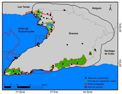 No obstante, partiendo de los resultados del trabajo de Estrada et al. (2011), se puede señalar la existencia en la provincia Granma de áreas con vegetación natural y seminatural, hacia las zonas montañosas y costeras fundamentalmente. Dichas áreas, en su mayoría, componen hoy parte de los núcleos de conservación del sistema de ANP; con un claro predominio de bosques fragmentados y la carencia de un sistema de conectividad. Esta carencia de conectividad impone la necesidad del establecimiento de una red de hábitats intercomunicados que mantengan la conectividad de los procesos ecológicos a nivel de paisaje en esta provincia de Cuba.
