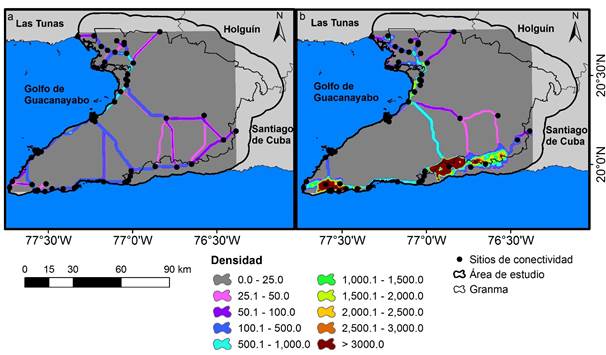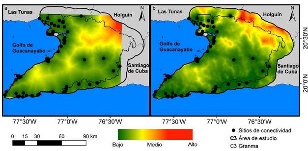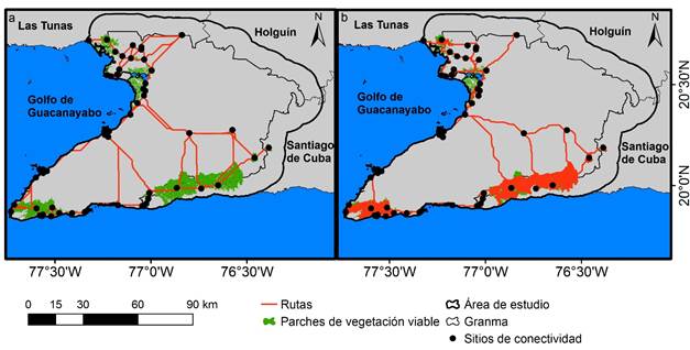 (Objetivo): En esta investigación se evalúa el efecto de la selección del método de generación del ráster de costos al desplazamiento sobre el trazado de las potenciales rutas de conectividad entre parches de bosque en las áreas naturales protegidas de la provincia Granma, Cuba.