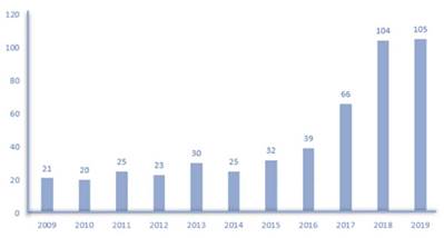 A nivel global, el avance de las ciencias computacionales, la tecnología digital y los sistemas de informática implica el aumento de los casos y la sofisticación de los ataques cibernéticos. Innovaciones tales como el Internet de las Cosas, transacciones financieras y pagos móviles usando equipos inteligentes y la computación en la Nube (reconocida en informática por su expresión en inglés, cloud computing) dan lugar al incremento del tipo y número de delitos informáticos (Finances Online, 2021). El Foro Económico Mundial reportó que el delito de más rápido crecimiento en el mundo es el ciberdelito (World Economic Forum, 2020). La Figura 1 muestra el número de incidentes de ciber-ataques, según el ya citado CSIS (2021).