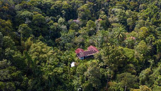 No tuvieron hijos propios, pero años después la pareja adoptó a un joven, hijo de un lugareño. La familia vivía en una casa de bajareque que Skutch construyó, y para las aves sembraron un huerto con árboles frutales y ornamentales, además con muchas flores. Bautizó la finca como Los Cusingos, nombre local del tucancillo piquianaranjado (Pteroglossus frantzii), practicó métodos agroecológicos de producción y convirtió su predio en un modelo de armonía ecológica (Figura 1). Pero mantener la finca y disponer de tiempo para sus excusiones diarias al bosque demandaba mucho trabajo y tiempo, por lo que la pareja siempre tuvo ayudantes domésticos y agrícolas.