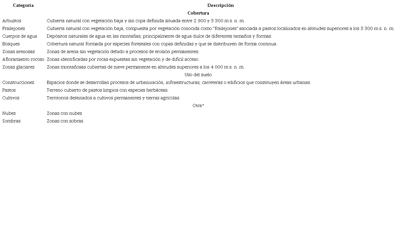 Palabras clave: Clasificación supervisada, ecosistemas andinos, esquema de clasificación de coberturas, Teledetección..