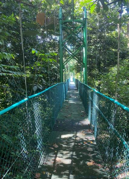 En consecuencia, gracias a los esfuerzos en materia de investigación científica que se vienen gestando desde el decenio de 1960, son muchos los investigadores y estudiantes que han encontrado en la maravillosa biodiversidad de su bosque de Tirimbina las interrogantes a responder mediante sus investigaciones. Cabe destacar que, originalmente con fines de investigación, se construyó un puente colgante para tener acceso al bosque (Figura 2), el cual ha sido de gran utilidad posteriormente para varias actividades de ecoturismo.