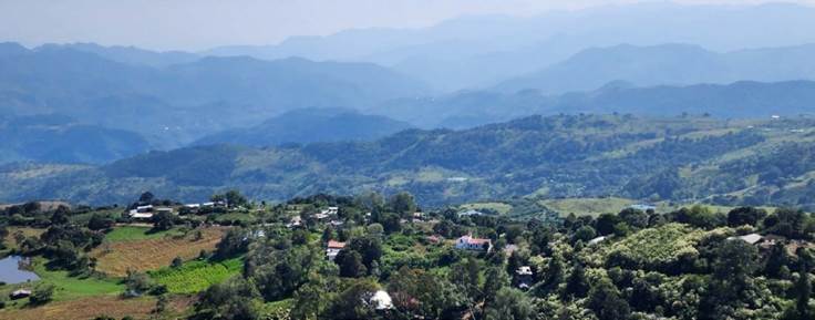 Localidad II: Montañas vulcano-tectónicas, denudativo-erosivas, con estructuras de colapso en forma de herradura (calderas), formadas por andesita-brecha volcánica andesítica, basaltos, rocas ígneas extrusivas ácidas, limolitas y conglomerados, en clima templado subhúmedo.