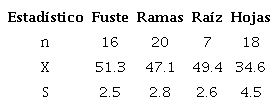 La fracción de carbono varió, en promedio, de 34.6 % en hojas a 51.3 % en el fuste, bastante similitud entre los componentes leñosos (fuste, ramas y raíz) y una variabilidad (S) inferior a 4.5 que correspondió a las hojas (Cuadro 1).
