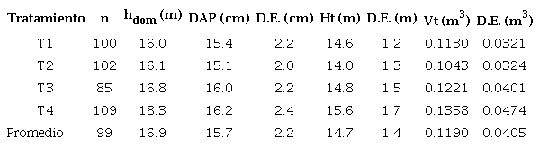 (Results): The results show that the site with the highest natural fertility presents a greater growth of the trees, however, there are no statistically significant differences between all the treatments applied. The site with the lowest natural fertility is located in Bahía Drake and it did present statistically significant differences in some treatments in terms of total volume.