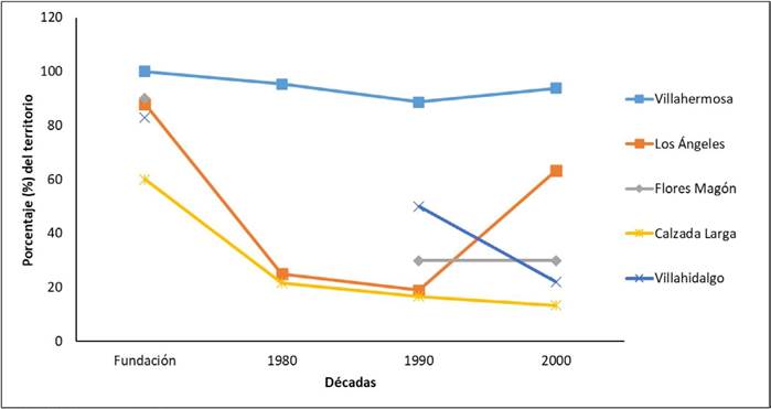 Flores Magón, comunidad establecida en una zona de amortiguamiento menos restrictiva y prácticamente con el límite de la zona de influencia de la REBISE, en algunas áreas de bosque el ganado puede tener acceso (Figura 2). Todas estas comunidades han limitado el uso del fuego como práctica de manejo, que es usado para reducir la mano de obra necesaria en las actividades agropecuarias, tales como combatir plagas o enfermedades, eliminar hierbas no deseadas y favorecer la presencia de pastos (Gutiérrez, 2015). Los resultados de la Sierra contrastan con las comunidades de los Valles, sus bosques se restringen a las áreas con menores características productivas. En el recuento histórico del cambio de uso del suelo, tuvieron una tendencia hacia la pérdida del bosque (Figura 3).