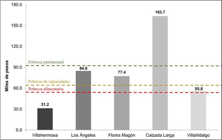 Para realizar una evaluación de la pobreza en cada ejido, se consideró una escala de referencia, la cual se construyó con base en la metodología de las líneas de pobreza del Consejo Nacional de Evaluación de la Política de Desarrollo Social (CONEVAL, 2010), que es una metodología de medición de la pobreza que se basa en el valor de la canasta alimentaria y en cubrir las necesidades básicas para que una persona pueda vivir. Las líneas de pobreza fijadas son las siguientes: