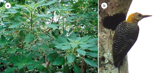 Ahora bien, en relación con las especies animales, entre los 300 especímenes enviados al Museo Real de Zoología, había tanto invertebrados (sanguijuelas, moluscos, ciempiés y milpiés, arañas e insectos) como vertebrados (peces, anfibios, reptiles, aves y mamíferos). Aunque Oersted recolectó especies de gusanos marinos (poliquetos), y von Warscewicz de anfibios, reptiles y colibríes, no hay duda de que Hoffmann fue el primer naturalista en interesarse por el estudio sistemático e integral de nuestra fauna. Al respecto, quienes lo auxiliaron fueron el malacólogo Carl Eduard von Martens, el entomólogo Friedrich Klug, el ornitólogo Jean Louis Cabanis y el mastozoólogo Wilhelm Peters. De las especies recolectadas, 16 fueron dedicadas a él, como el caracol Drymaeus hoffmanni, el milpiés Chondrodesmus hoffmanni, la araña picacaballo (Sphaerobothria hoffmanni), la culebra de tierra (Geophis hoffmanni), el pájaro carpintero Melanerpes hoffmannii(Figura 2B) y el perezoso de dos dedos (Choloepus hoffmanni).