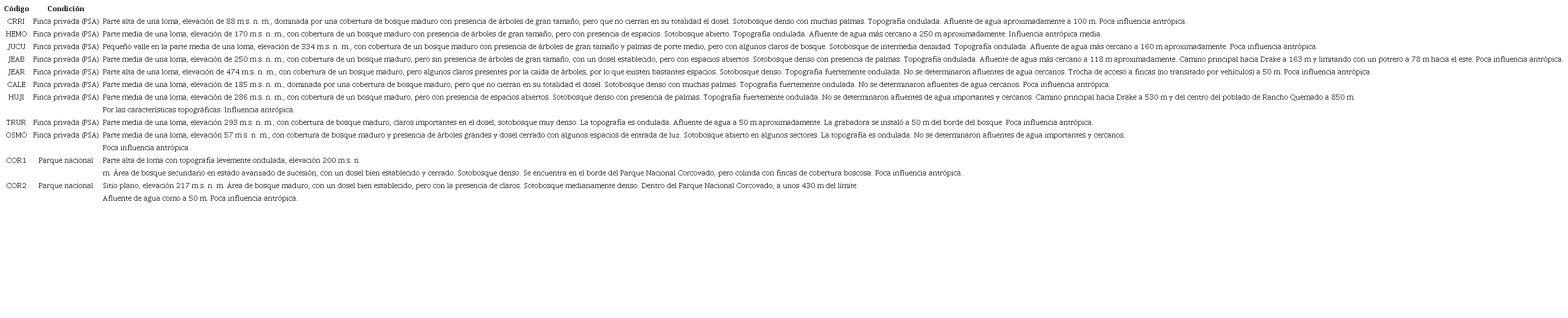 (Objetivo): Analizar el uso del monitoreo acústico para la evaluación de ecosistemas en 11 sitios en la Península de Osa: 9 en fincas privadas y 2 sitios dentro del Parque Nacional Corcovado.