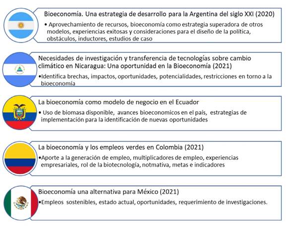 De igual manera, es posible señalar que, en materia de Estrategias de Bioeconomía, Costa Rica lidera estos esfuerzos en Latinoamérica, dadas sus potencialidades, países como Uruguay secunda estos esfuerzos iniciando en el 2020 la elaboración de su estrategia nacional. El resto de los países no han desarrollado aún esfuerzos estatales explícitos, pero contemplan algunos programas, iniciativas o instrumentos de política pública relacionados con el tema, dentro de esos países se encuentran Argentina, Brasil, Chile, Colombia, Ecuador, México, Guatemala, Puerto Rico y Paraguay (FONTAGRO, 2023; Hodson de Jaramillo et al., 2019; IACGB, 2024).