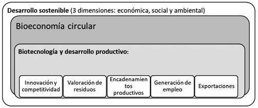 (Results): As a result, it is found that despite facing structural barriers and challenges such as market aspects, coordination governance, waste management, availability and use of biological, financial, educational, social resources, among others; the bioeconomy is positioned along with biotechnology as a great opportunity to develop valorization and management of waste, enhance productive processes and value chains with high added value related to research, development and innovation, knowledge, competitiveness, encouraging the generation of employment, new exports and access to more and better markets.