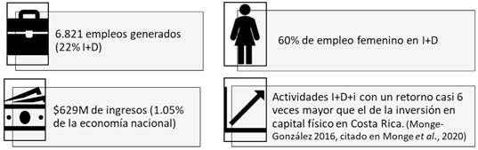 Mejorar las capacidades del país en innovación tiene el potencial de aumentar la productividad y el crecimiento económico y, con ello, desarrollar más beneficios sociales, como la reducción de la desigualdad y la disminución de la pobreza (Monge y Torres, 2014, p. 42). Aunado a esto, si la innovación considera elementos ambientales tal y como se puede lograr desde varias aplicaciones biotecnológicas, se aporta a los tres pilares del desarrollo sostenible.