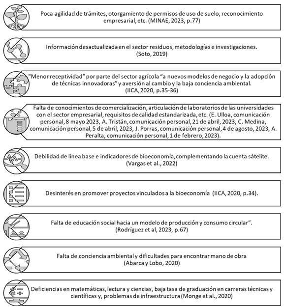 El aprovechamiento de las oportunidades mencionadas implica una serie de desafíos. La Estrategia Nacional de Bioeconomía reconoce algunas posibles limitaciones, las cuales se muestran en la Figura 8.