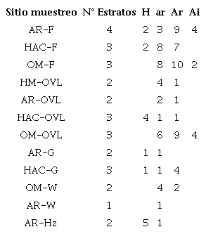 sitios presentan una estructura diamétrica irregular con ausencia de individuos en algunas clases (OM-W). Sitios con bajo número de elementos arbóreos o arbustivos y en los que dominaba el estrato herbáceo no se contemplaron en este análisis (AR-G, HAC-G, HM-OVL, AR-OVL, AR-Hz, AR-W).