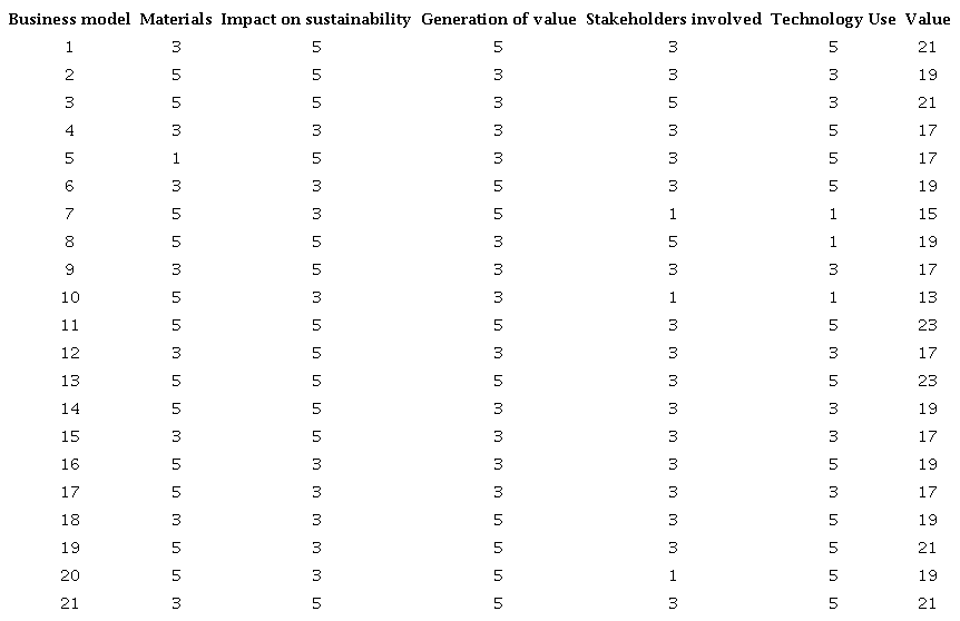Each business model described above was evaluated according to the criteria mentioned in the methodology. Six of them obtained the highest score among all the 21 business models, because of their exclusivity in the management of flexible waste, their impact on the three dimensions of sustainability, the increase in the value of plastic waste, the involvement of five or more interest groups and its high use of technology. The six selected models with the highest score are shown in Table 3, they scored over 90 % of the maximum grade.