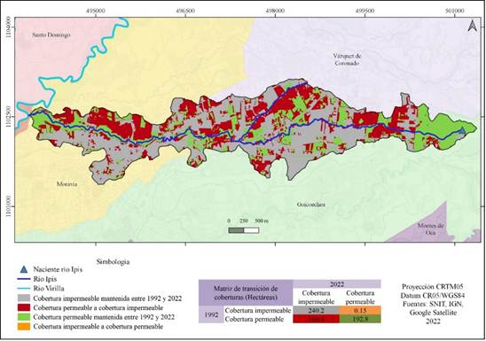 3.1 Cambios de cobertura de la tierra en la microcuenca del río Ipís (1992-2022)