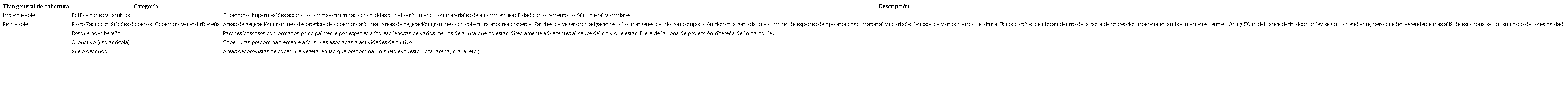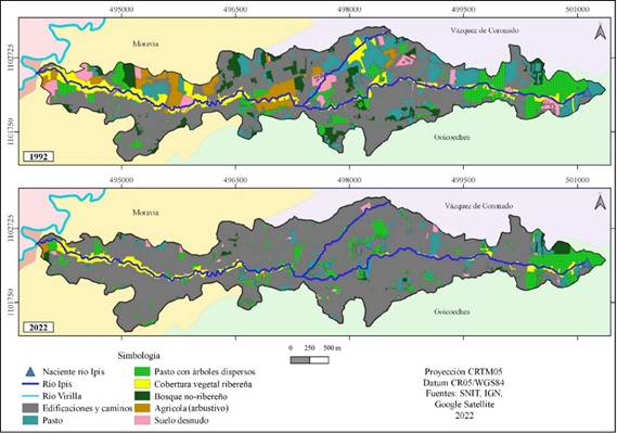 (Conclusions): The expansion of cover associated with urban uses has been prominent in the Ipís River micro-basin over the last three decades, and the high degradation in its riparian zones compromises the ability to provide ecosystem services in this context of high anthropogenic alteration.