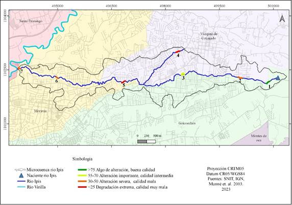 (Results): During the study period, in the Ipís River micro-basin there was a significant increase in impervious cover (66.6%) at the expense of more pervious cover with greater ecological functionality, and there has been greater fragmentation and isolation of patches of more pervious covers. The QBR index values also suggest high alteration and poor ecological integrity in the riparian zones of the micro-basin in general.