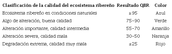 Munné, A., Prat, N., Solà, C., Bonada, N., & Rieradevall, M. (2003). A simple field method for assessing the ecological quality of riparian habitat in rivers and streams: QBR index. Aquatic Conservation: Marine and Freshwater Ecosystems, 13(2), 147-163. https://doi.org/10.1002/ aqc.529