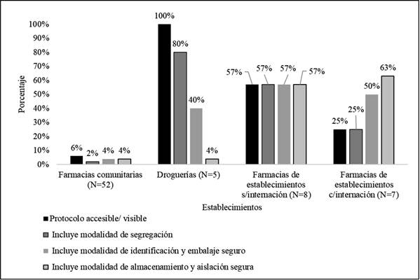 En cuanto a los establecimientos sanitarios estudiados, estos cumplen con las normativas ambientales en su totalidad, puesto que se encuentran registrados en el sistema de recolección habilitado y coordinado por el municipio. La existencia de los protocolos aplicados se observa en la Figura 1.