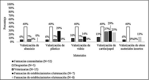 (Results): All establishments comply with current environmental regulations. Pharmaceutical distributors demonstrate superior management, excelling in traceability, standardization, and training. While stock control is utilized, there are few secondary strategies to reduce waste and insufficient material recovery. Municipal initiatives and attitudes towards controlling this phenomenon are positive but lack support from higher levels of government.