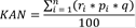 El cálculo del KAN se logró a partir de cada uso de suelo o cobertura vegetal existente en cada polígono; se le asignó un valor ponderado que va desde 1 hasta 9 a cada tipo de cobertura o uso, según su grado de transformación. El índice de profundidad de trans formación del paisaje se determina usando un sistema de expertos y caracteriza el peso de cada uno de los tipos de utilización de la naturaleza en la transformación sumaria de la unidad de paisajes dada. Se propone con base en la analogía establecida en la propuesta de Shishenko (1999). El índice se expresa de 0 a 10; un valor cercano a 0 indica paisajes muy poco modificados y uno próximo a 10, paisajes con altos niveles de modificación.