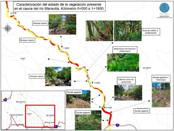 Durante el año 2021 se llevó a cabo el diagnóstico, el cual dio paso a un listado de especies más representativas de la zona, se identificó el bosque de referencia, se seleccionaron las especies de vegetación a utilizar y se identificaron los espacios destinados al proceso de rehabilitación ecológica. Adicionalmente, al inicio del 2021 se llevó a cabo la actividad de identificación de los sitios prioritarios para implementar las acciones de restauración a lo largo del área de protección del río Maravilla, incluyendo la delimitación para los sitios con retiro de 15 y 50 metros, según lo establece la legislación nacional.