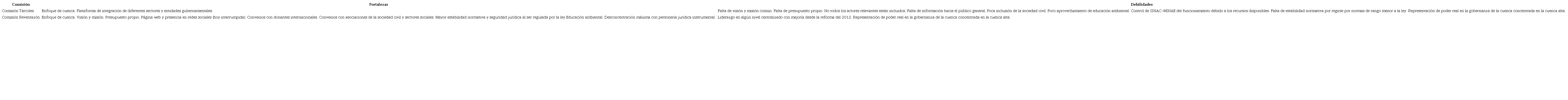En algunos casos, las fortalezas de uno son las debilidades del otro y viceversa. Las fortalezas de ambas comisiones consisten en que usan un enfoque de cuenca, como lo promueve la regulación nacional costarricense al respecto (Cuadro 3).