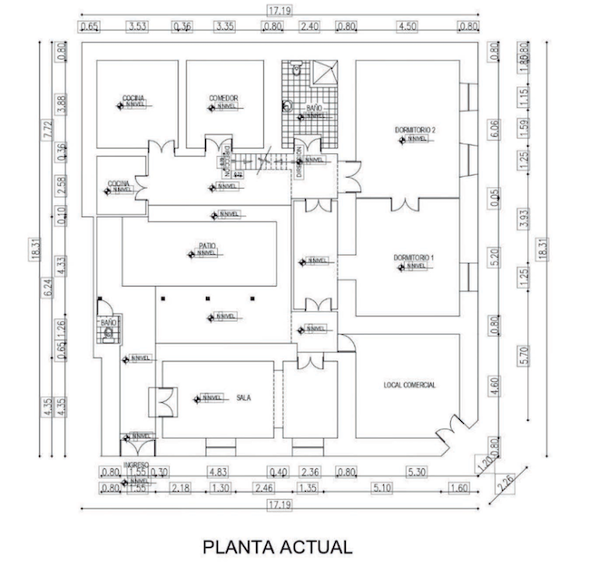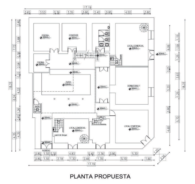 La propuesta busca convertir el dormitorio 2 en un local comercial y la amplia sala en dos locales comerciales, de tal manera que se puedan arrendar y que los ingresos económicos le den sustentabilidad al bien patrimonial.
