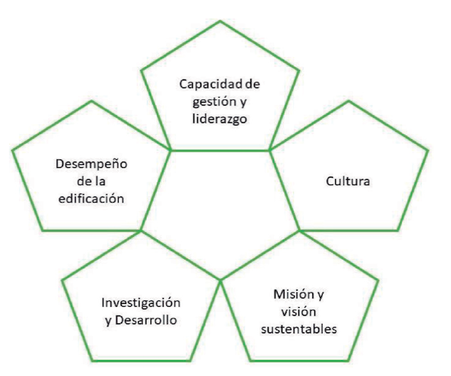 Sobre el vínculo entre organización y sustentabilidad en la industria de la construcción las referencias son escasas, y más limitadas son en la línea mercado y organización; en este sentido, Goh y Rowlinson (2013) proponen cinco ejes para evaluar la sustentabilidad, tanto de la edificación como de las organizaciones constructoras (figura 1).