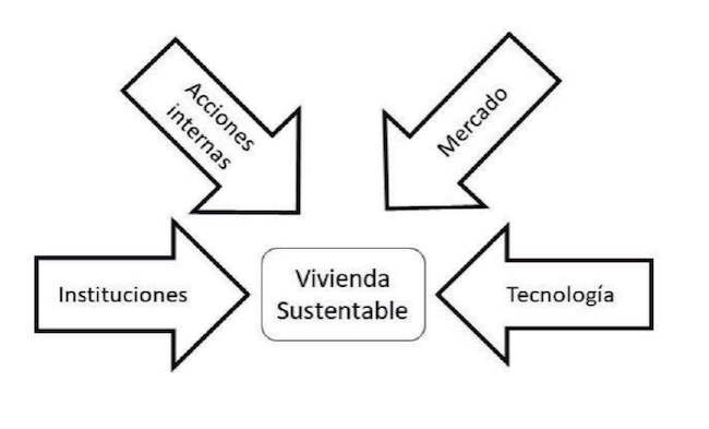 Las instituciones incluyen gobierno, colegios de profesionales, instituciones educativas y financieras, que aportan condiciones favorables al surgimiento de la vs mediante programas de financiamiento o formación de recursos humanos; en la categoría de tecnología se incluye, entre otros, el conocimiento y la investigación respecto de materiales y prácticas de construcción alternativa; el mercado participa a través de la demanda de vivienda asequible, y las acciones internas se refieren al compromiso que asume la organización a través de capacitación, políticas y recursos. Los autores coinciden en que diferentes niveles de mercado tendrán diferentes exigencias; sin embargo, no profundizan en las diferencias que tiene cada nicho de mercado.