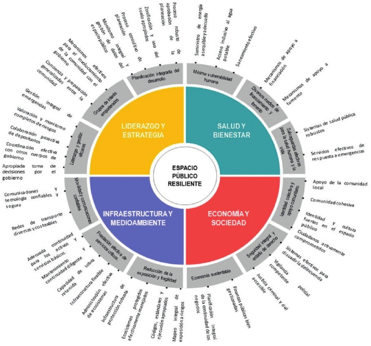 En cuanto al concepto de espacio público resiliente, no se tiene una definición exacta. No obstante, de acuerdo a las acciones de las estrategias de resiliencia revisadas previamente, podemos inferir que se refiere a espacios seguros, que permiten su uso emergente en caso de desastre, contribuyendo a atender situaciones de emergencia.