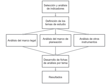 En la etapa de análisis se revisaron los marcos legales, de planeación e instrumental aplicado a cada servicio urbano identificado. En el primero de ellos, se abarcan las Leyes Federales que emiten regulaciones de carácter general y las NOM que son de uso obligatorio. Además, se pueden incluir Normas Mexicanas (expresan recomendaciones), PROY-NOMs (están sujetas a cambios) y Normas de Emergencia.