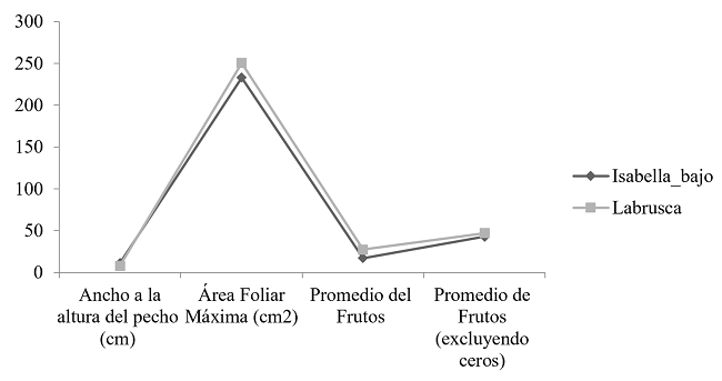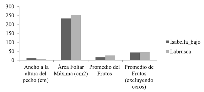 En este sentido, se sostiene que entre mayor crecimiento o desarrollo presenten las plantas, mejores serán los resultados en la producción, además existirá variación inducida por la zona de plantación y técnica de cultivo empleada. Se predice que la variedad Isabella tendrá los mejores resultados por el tiempo de aclimatación y el tamaño de las plantas en función al tiempo que llevan en el viñedo.