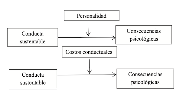 El rol moderador o mediador de los costos es igualmente esperable, aunque su influencia en la relación CS-consecuencias se anticipa será negativa (Diekmann, y Preisendörfer, 2003). Si una persona percibe sacrificio o malestar asociado con sus CS es de esperarse que esa percepción influya en los niveles de beneficios asociados a las CS. A pesar de que esta idea es lógica, no ha sido estudiada, hasta donde se tiene conocimiento, por consiguiente, uno de los propósitos del presente estudio es el de someterla a prueba empírica, junto con la hipótesis de que los rasgos de personalidad influyen en la asociación entre las CS y sus consecuencias psicológicas positivas.