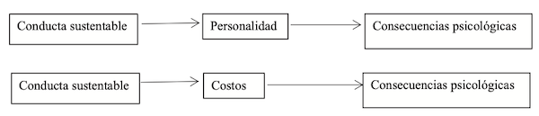 Resumen: La Conducta Sustentable (CS) puede tener tanto repercusiones psicológicas positivas (bienestar, satisfacción, felicidad) como negativas (costos y sacrificios) en las personas que la practican; sin embargo, no se conoce la causa de esta discrepancia. El presente estudio tuvo como objetivo investigar la posible influencia de variables como los rasgos de personalidad y los costos conductuales en la relación entre CS y sus consecuencias positivas en 100 estudiantes universitarios en una ciudad del norte de México. Se utilizaron instrumentos que registran conductas sustentables, escalas que miden felicidad, bienestar psicológico y satisfacción, así como un inventario de los 5 grandes factores de la personalidad y una escala de costos conductuales del comportamiento sustentable. Se encontraron mayores niveles de beneficios psicológicos que de costos conductuales asociados con las CS. Mediante el empleo de ecuaciones estructurales, el estudio también reveló que los rasgos de personalidad no afectan la relación CS-consecuencias positivas, mientras que los costos conductuales sí la influyen, de manera negativa y en una función híbrida, al fungir tanto como mediadores y como moderadores de la relación.