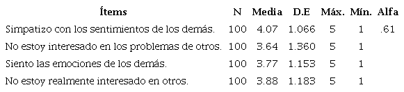 Participaron 100 estudiantes universitarios (30 hombres y 70 mujeres) de la ciudad de Hermosillo, México, con edades comprendidas entre los 18 y los 28 años, elegidos al azar en las carreras de Educación, Psicología y Biología.