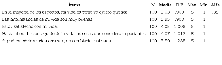 Diener, E., Emmons, R., Larsen, R., y Griffin, S. (1985). The satisfaction with life scale. Journal of Personality Assessment, 49, 71-75.
