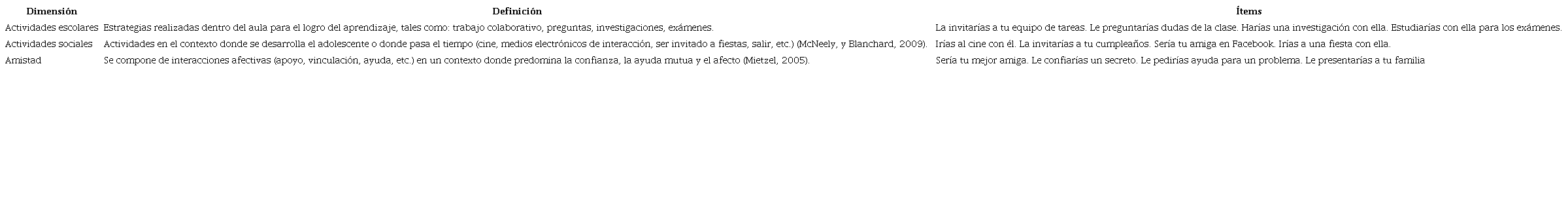 Para medir la aceptación social, se utilizó la escala de Aceptación Social elaborada por Camelo (2018), la cual mide el nivel de apreciación por el grupo de pares del estudiante con alto rendimiento académico en tres dimensiones: aceptación en actividades académicas, sociales y de amistad.