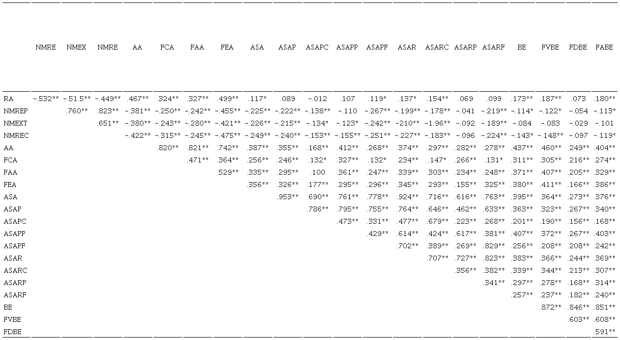 Otro objetivo de estudio era comparar las variables de estudio por sexo. Así se observó que las mujeres tienen un mayor RA que los hombres, lo que concuerda con lo encontrado por Ávalos et al. (2018) y Echavarri et al. (2007). Lo anterior sugiere la relevancia de considerar las habilidades cognitivas que distinguen a ambos sexos académicamente para el diseño y desarrollo de los programas educativos y aplicación de los métodos pedagógicos (Echavarri et al., 2007). Por otro lado, no se encontraron diferencias significativas en la AA, pero sí en FAA y FEA, como sucedió en el estudio de Blanco, Ornelas, Aguirre, y Guedea (2012); mientras que, en el estudio realizado por Saunders et al. (2004), las mujeres demostraron un mayor nivel de AA.