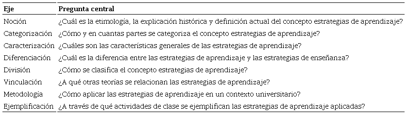 Así entonces, en este artículo se propone: 1) analizar bajo el modelo de cartografía conceptual las estrategias de aprendizaje”, 2) conocer su funcionabilidad en espacios universitarios y en la sociedad del conocimiento y 3) plantear propuestas metodológicas que favorezcan al estudiante mediante la aplicación de las estrategias de aprendizaje.