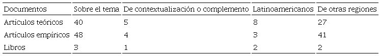 En la tabla 2 se presentan los documentos seleccionados que cumplieron con los criterios de inclusión aunado a los documentos de apoyo para complemento del análisis y brindarle contexto. En total fueron 91 documentos.