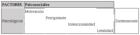 Así mismo, en estas autopsias psicológicas se consideraron cuatro categorías: la motivación, considerada como las razones psicológicas para morir arraigadas en el tiempo de vida, las conductas, pensamientos, estilo de vida y personalidad; los factores precipitantes, entendidos como hechos inmediatos o circunstancias que podrían desencadenar la razón última para quitarse la vida; la intencionalidad, que es el nivel inferido de pretensión que tiene una persona para suicidarse; y por último, la letalidad, que se analiza de acuerdo al método utilizado para morir y las consecuencias que conlleva, evalúa también el grado de lucidez en la planeación, preparación y objetivación de la acción autodestructiva (Valdés et al., 2021).