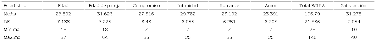 El compromiso se relaciona con el interés y la responsabilidad que se siente por la pareja y la decisión de permanecer junto a ella. La intimidad tiene que ver con el apoyo emocional, la profundidad en las conversaciones, la confianza, el compartir cosas materiales, etc. El romance se relaciona con las conductas establecidas socialmente para la atracción y posterior interés que se pueda generar en la pareja. Finalmente, el amor en la relación de pareja es de tipo biológico y se presenta de la misma forma en todas las culturas (p. 100).