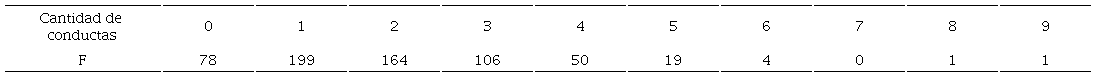 Al contabilizarse las conductas por persona, se observaron desde cero a nueve acciones reportadas, aunque la mayoría mencionaron entre una y dos conductas (M = 1.90, DE = 1.34; ver tabla 5).