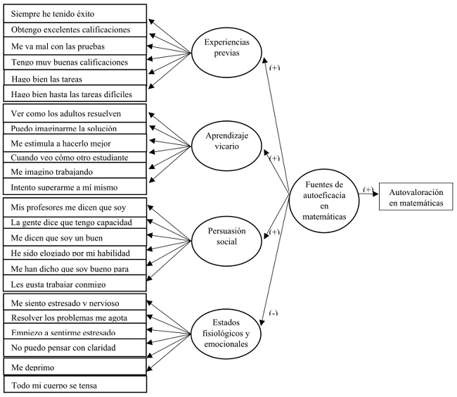 Posteriormente, la escala de fuentes de autoeficacia en matemáticas se analizó mediante un análisis factorial confirmatorio realizado por Echeverría y sus colaboradores (2020). Con el objetivo de comprobar su utilidad para la medición del constructo en universitarios mexicanos, trabajaron con una muestra de estudiantes sonorenses recién admitidos a una institución pública. Los resultados mostraron bondad de ajuste adecuada para el modelo de medida con la escala de fuentes de información de autoeficacia en matemáticas, conformada por los factores experiencias en el dominio, aprendizaje vicario, persuasión social y estado fisiológico, tras la eliminación de algunos reactivos.