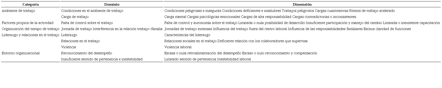 Para entender con una mayor amplitud los alcances de la norma, a continuación, describiremos cada una de sus categorías desde la perspectiva de la psicología organizacional, tomando como referencia estudios internacionales.