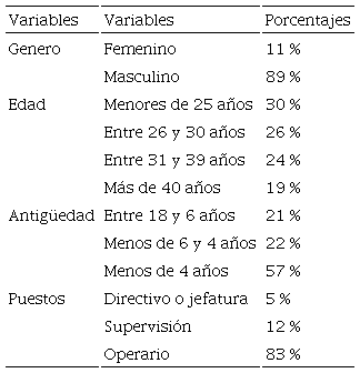 Se encuestó al total de trabajadores (250) de dos empresas de manufactura que están ubicadas en el municipio de Irapuato. Las empresas son proveedoras de la industria automotriz (producen partes plásticas) y son de capital mexicano. Este municipio tiene una importancia preponderante dentro del Estado de Guanajuato, ya que cuenta con una industria manufacturera, principalmente del ramo automotriz, que es proveedora de plantas de armado como Ford, Honda, General Motors, entre otras. También tiene una relevante industria alimentaria de productos congelados, entre los que se destacan las fresas, brócoli, coliflor, etc. La tasa de desocupación es de 3.04 % y la población económicamente activa es de 59.5 % en el cuarto trimestre de 2022 (Data de México, 2023). Como se puede apreciar en la Tabla 4, la muestra es predominantemente masculina, por lo que no se puede hacer una comparación estadística entre los géneros, ya que el tamaño de muestra no es ni cercanamente proporcional.