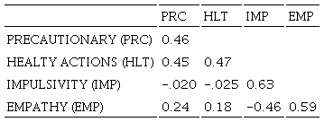 The most complex model was, of course, the interdisciplinary one, which, in addition to specifying the paths from the four independent variables of the two disciplinary models on the dependent variable, specified effects from impulsivity to both empathy and healthy actions. Results of the interdisciplinary model revealed that empathy and healthy actions significantly and positively influenced precautionary actions, replicating findings from the unidisciplinary models.